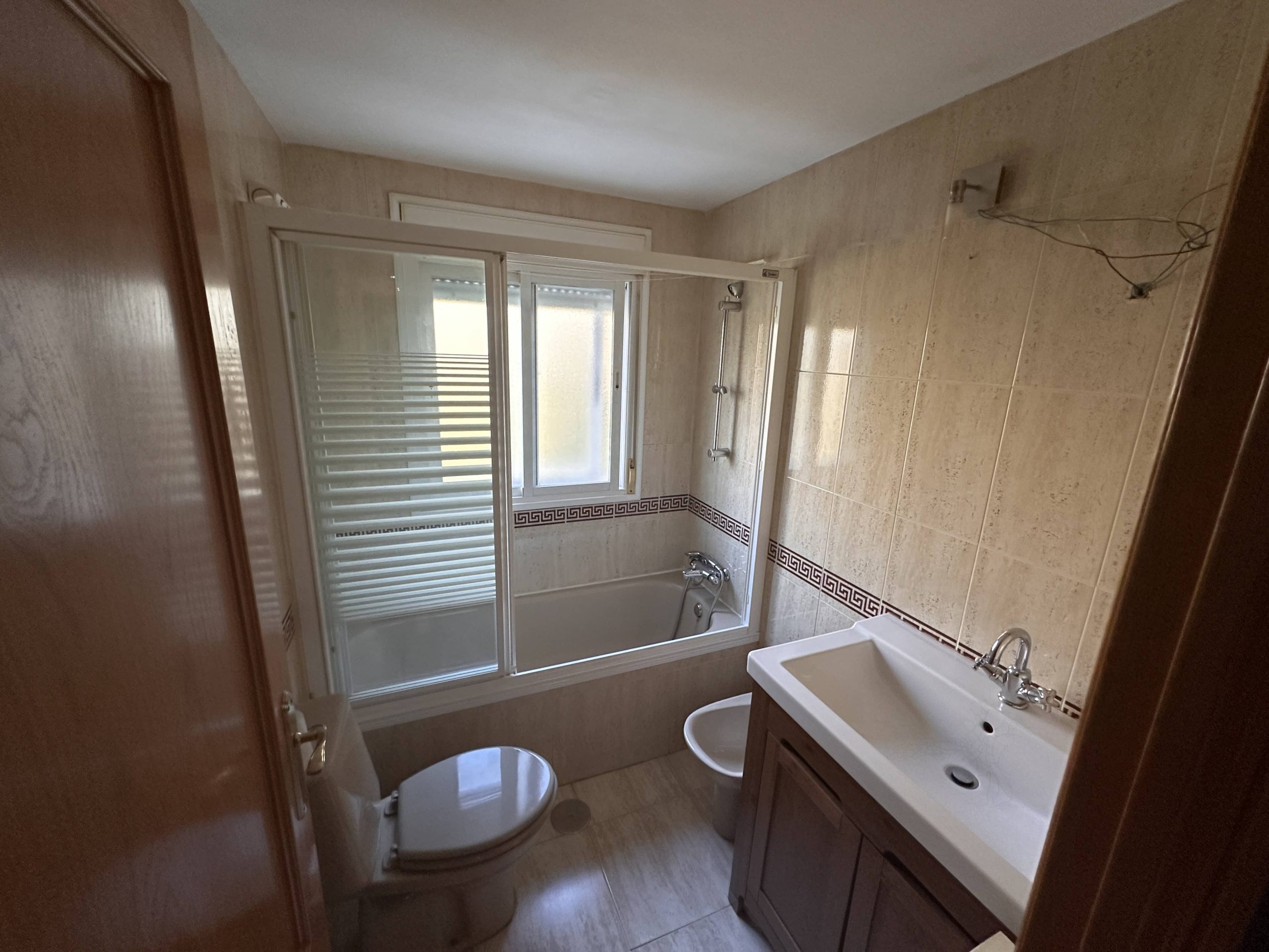 Nos encontramos con un baño clásico: azulejos de tono beige, bañera tradicional con mampara corredera, sanitarios antiguos y un mobiliario que ya no respondía ni a las necesidades ni al estilo de vida actual.